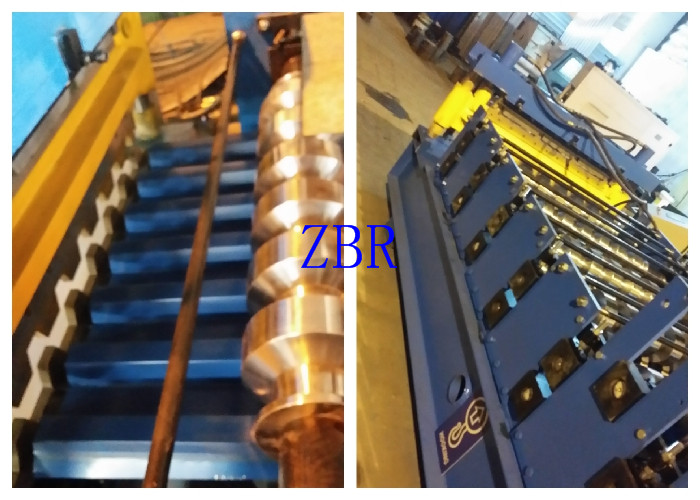 Install the pre-cutting system on normal roof roll forming machine, it will save much materials, you needn't to produce one kind of roof panel for the whole color steel coils, once you want to stop, the pre-cutting system could help you to cut the material, and it is full automatic, you could set it with PLC control display.
